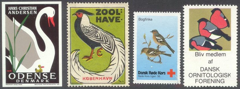 FÅGLAR PÅ BREVMÄRKEN, Danmark.
