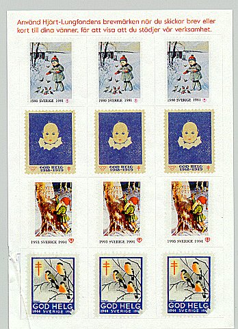 - Våra svenska landskap, (25 varianter) År: 1990. Konstnär: Gunnar Brusewitz. Fyra av märkena avbildar fåglar; Norrbotten (lavskrika), Gästrikland (tjäder), Östergötland (knölsvanar) samt Dalsland (korpar). Finns i kartor om 50 märken. Priset för en karta 25 kr och för ett märke 50 öre.