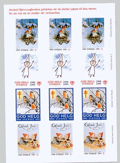 - Vinterfåglar. (25 varianter). År: 1974. Konstnär: Gunnar Brusewitz. Upplaga: 13,5 milj. Tecknade fåglar: Nötskrika, kråka, skata, koltrast, nötkråka, gulsparv,