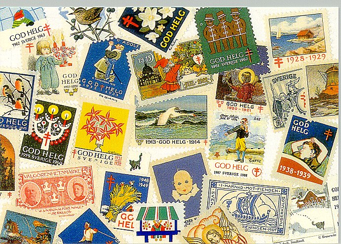Motiven hade utvalts vid en tävling på Konstfackskolan i Stockholm. Svenska Reproduktions AB har svarat för tryckningen. Priset för en karta 5 kr och för ett märke 10 öre. - [Variant: Blåmes, ingår i jubileumskarta 1994]