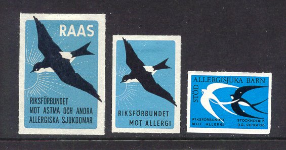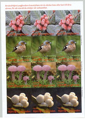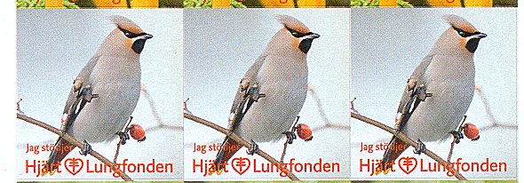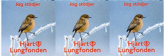 - Fåglar. Strip om 6 märken. År: omkr. 1989-1990. Konstnär: Rune Wenliden. Finns i kartor om 6 x 5 eller 6 x 10 märken samt i kartor om 2 x 9 märken. Ingående fåglar: Gröngöling, sidensvans, grönfink, rödhake, rödstjärt, bergfink.