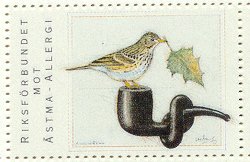 - Trädpiplärka. Häfte innehållande 50 märken (10 x 5 ark). Format: 43 x 30 mm. Konstnär: Lasse Åberg. Bladet tillhör växten spikklubba, datura stramonium som är en medicinalväxt vilken använts mot astma. Häftets pris 50:- [1992]. Finns även som vykort (A5-format).