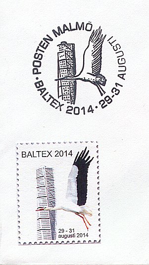 Baltex 2014. Malmö. Vit stork. - Minnespoststämpel