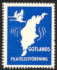 - 10-block. med märket i storlek ca 33 x 42 mm. Återger Gotlands karta som huvudsymbol med svanarna i övre vänstra hörnet. "Omständigheterna något diffusa men vill minnas att brevmärket trycktes till