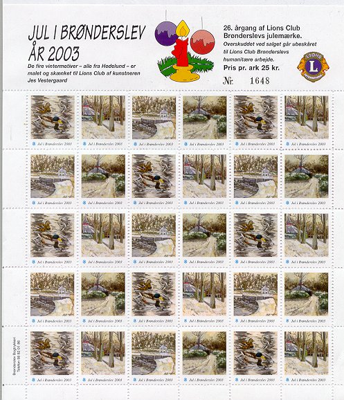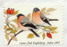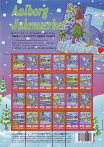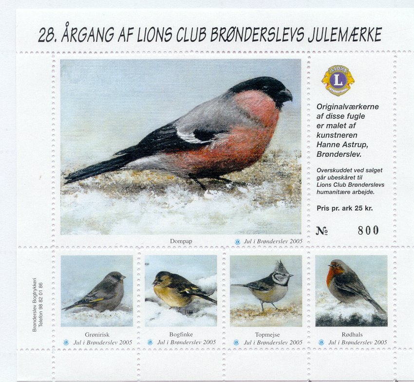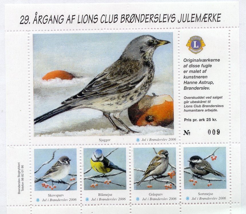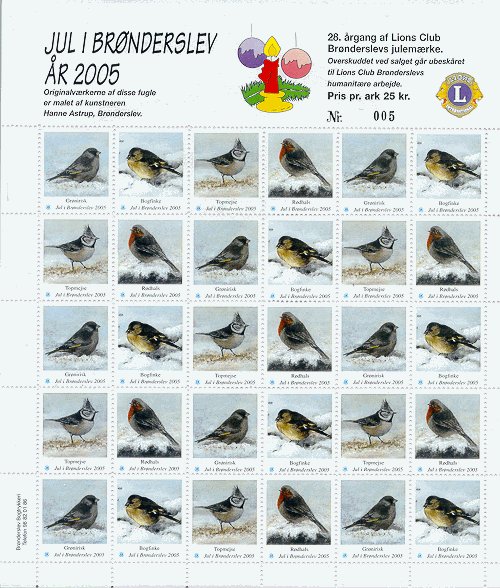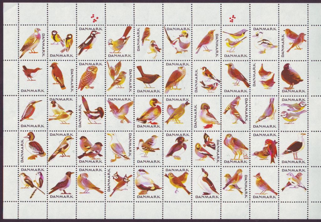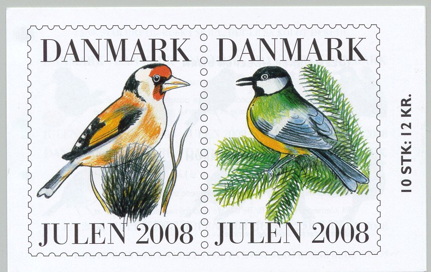 Erik Moeslund. 2001. Idyl ved Aunsbjerg og fugle. 2v = Talgoxe, blåmes. Helark 30 märken.