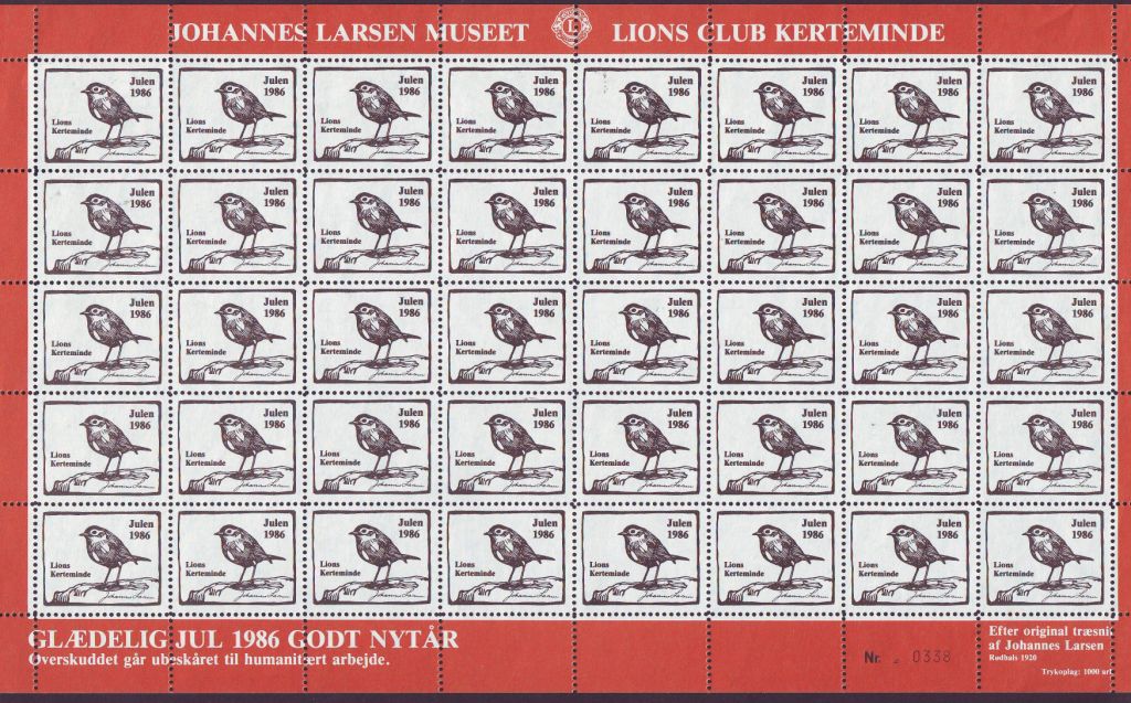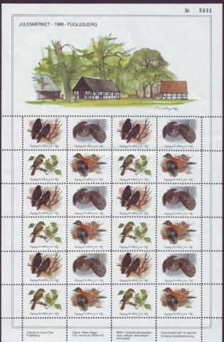 Johannes Larsen. 1v = Spurv (Rödhake). 1986. [Block 40v]