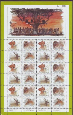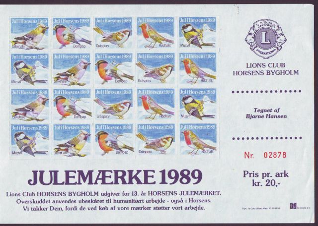 Bjarne Hansen. 4v = Gråsparv, Domherre, Talgoxe, Rödhake. 1989. [Block 20v]