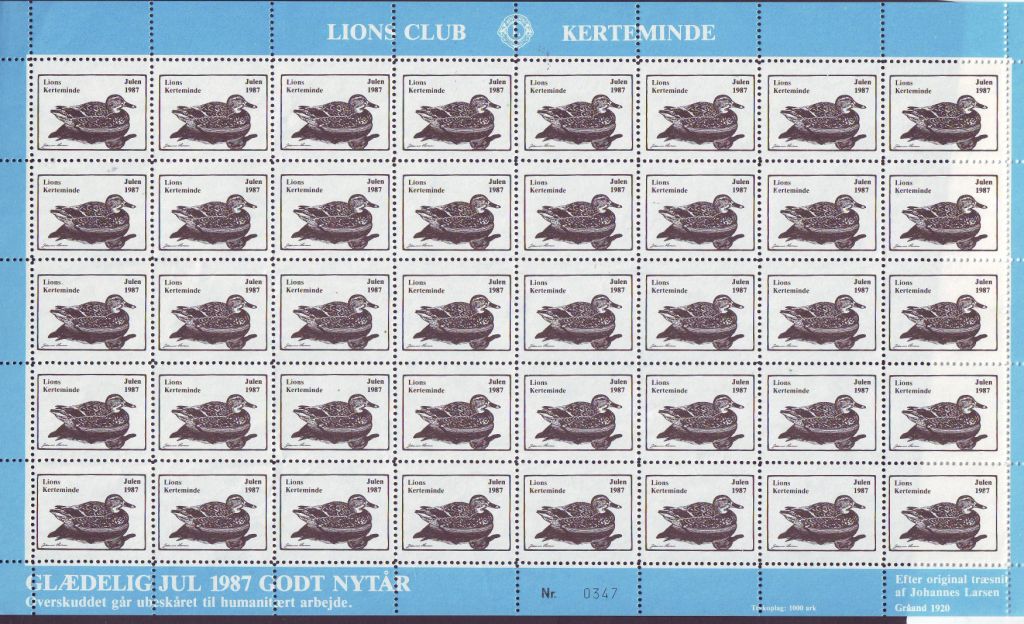 Johannes Larsen. 1v = Gråand (Gräsand). 1987. [Block 40v]