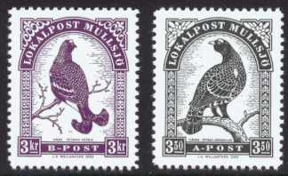 Tryckta i ark med 20 märken 4x4 skurna på tre sidor. Streckperforerade.
