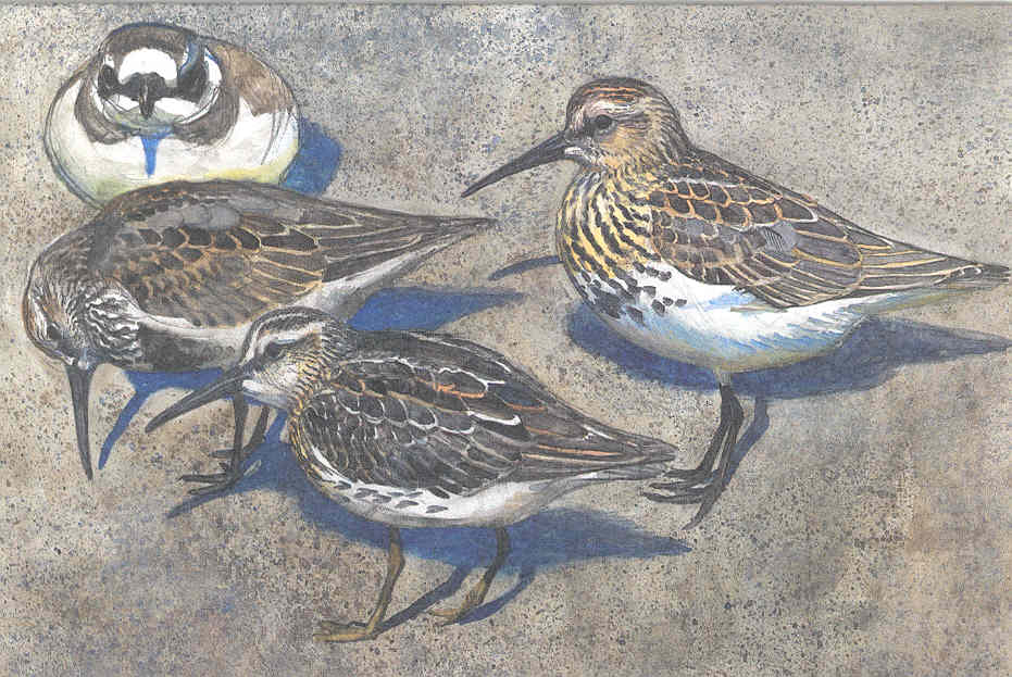 Finns även som vykort (Skärfläcka, ljungpipare, mindre strandpipare) samt i