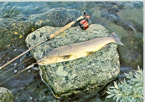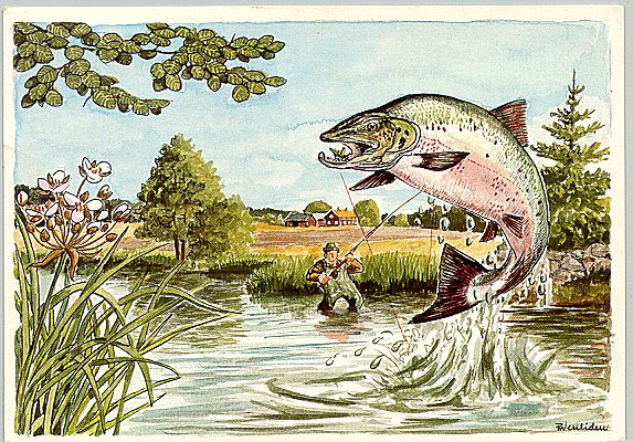 - Leif Östergrens Naturfoto. Fiskefångst med stor öring. E. 261.