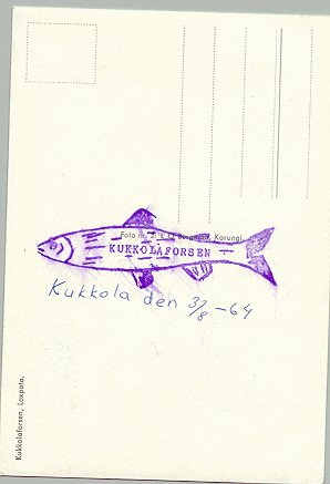 - Bergman, L O. Kukkolaforsen, Laxpata. [1964*] - [[Kortets baksida]