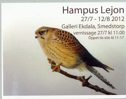 - Hampus Lejon. Tornfalk, Örnahusen. Vernissagekort. 140 x 107 mm. [2012]