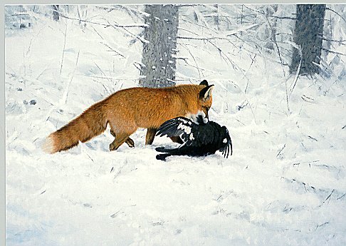 Lennart Sand. Räv med orrtupp. A5.