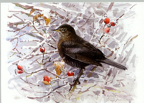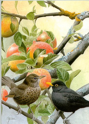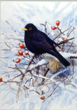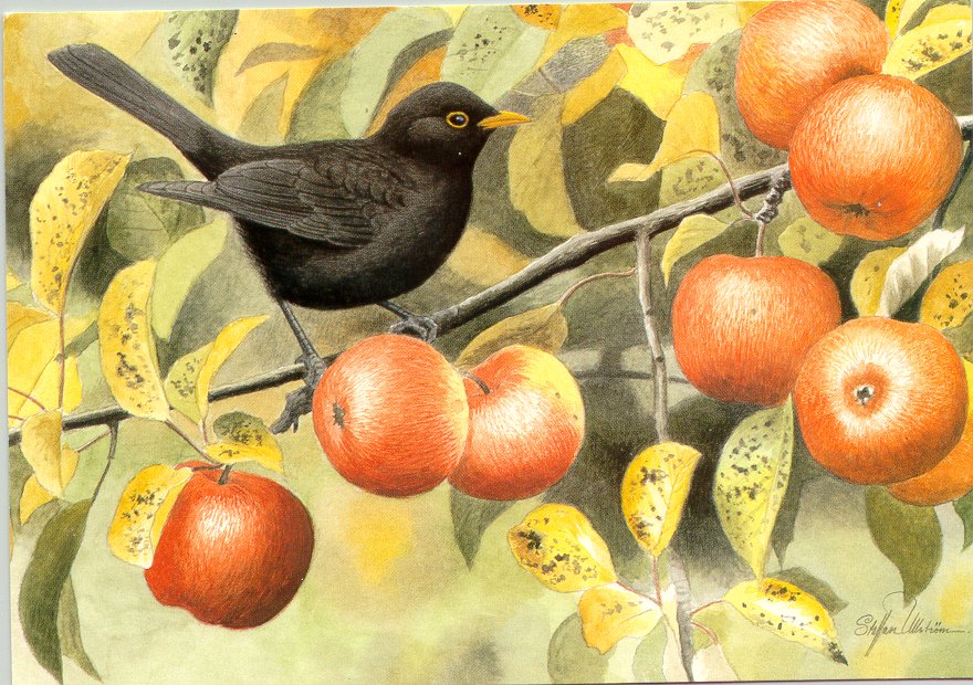 - Lars Jonsson. "Koltrast." Naturskyddsföreningen. God Jul... 180x129 mm. [1995]