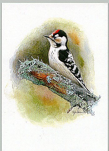 - Johan Stenlund. "Mindre hackspett." Upplands Orn. Förening. Sv/v. 150x110 mm. [1984]