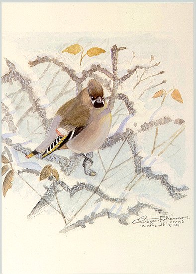 - Åke Aronson. "Vinterfåglar." (Nötskrika, nötväcka, domherre, koltrast, gulsparv,