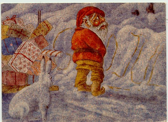 - Räv och tomtar. God Jul ...Dubbelt. 120 x 175 mm. Gerharbs. [1990*]