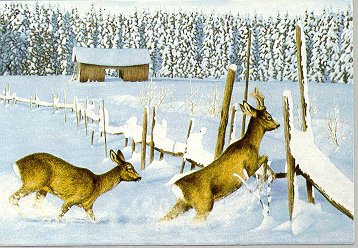 - Rådjur i vinterlandskap. God Jul ... Dubbelt. 155 x 115 mm. ESSELTE GRAKO. 1826-3173-3. [1990*]