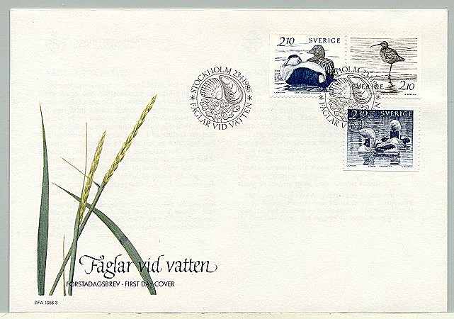 - 23.1.1986. Fåglar vid vatten: Ejder, småspov - Storlom - [FDC]