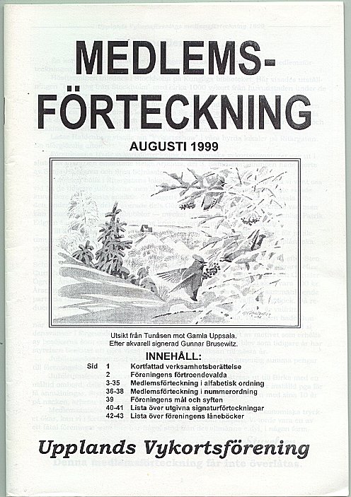 - Sidensvans. "Utsikt från Tunåsen..." Upplands Vykortsförening. [1999] - [Omslag, Medlemsförteckning].