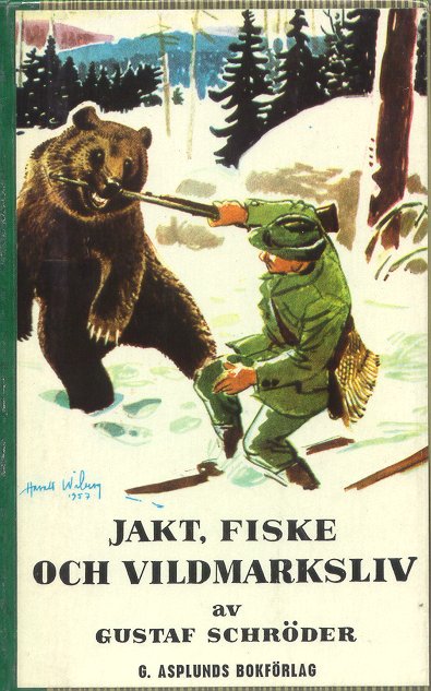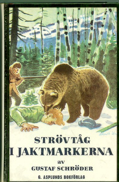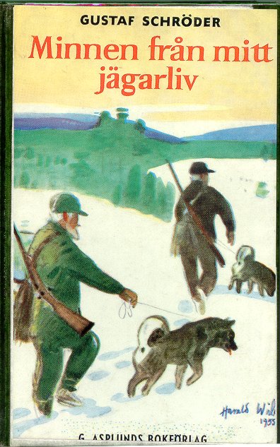 - Schröder, Gustaf. 1985. Schröders jaktskildringar. Omfattar komplett 10 delar. Omslag: H.W. Asplunds bokförlag. [Del 2: Minnen från mitt jägarliv.] - [Del 3: Jaktminnen från fjäll och sjö.] - [Del 7: Jakt, fiske och vildmarksliv.] - [Del 8: Strövtåg i jaktmarkerna.]