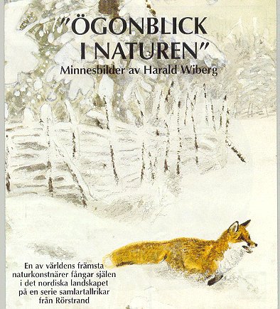 - Wiberg, Harald. 1948. Djur i naturen: Teckningar. Med förord av Björn von Rosen. 5s. 32 lösa pl.-bl. i pärm.