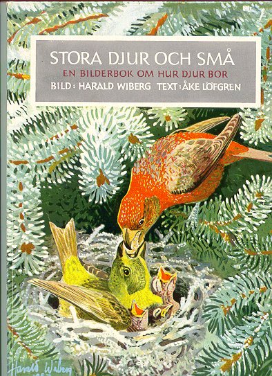 - Löfgren, Åke & Harald Wiberg. 1958. Stora djur och små. En bilderbok om hur djur bor. Rabén & Sjögren.