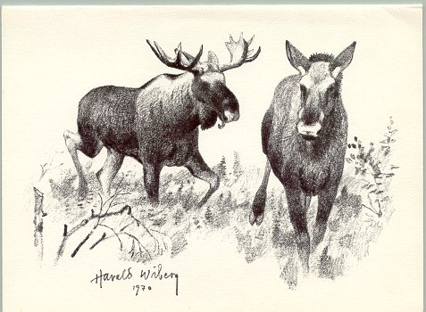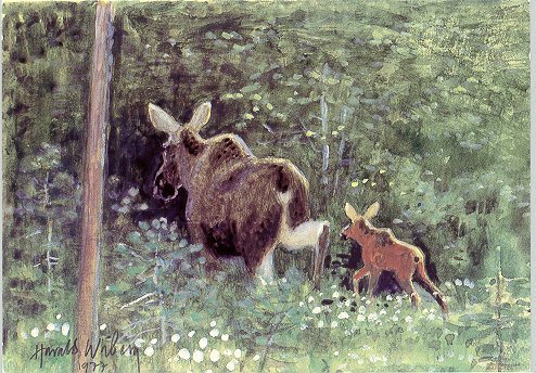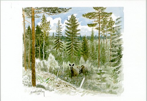 - Älg i gammal granskog." Pictura Graphica AB 1976. 1-482-9. sv/v.