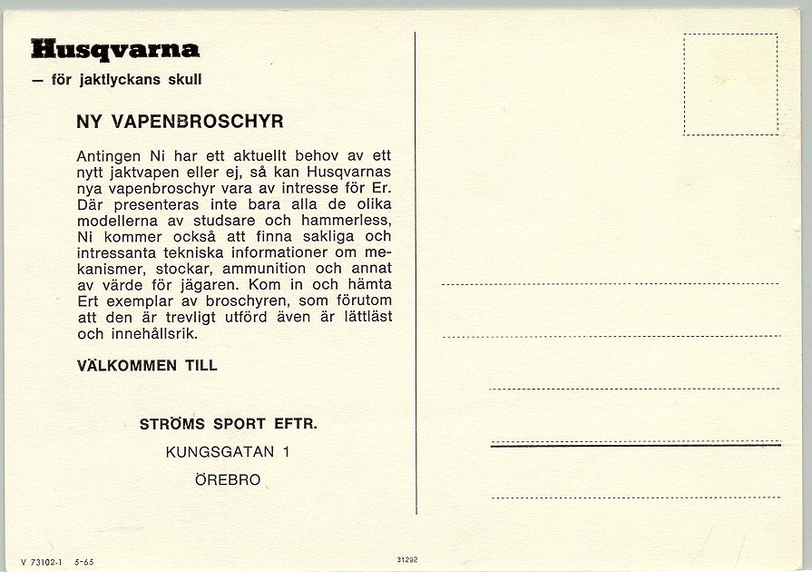 Rådjur. Reklamkort Husqvarna, Ströms sport eftr, Örebro. - [Baksidan]