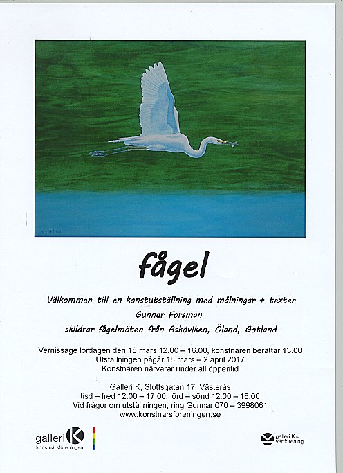 - Forsman, G. 2017. Konstutställning, Galleri K, Västerås, A5. 2017.