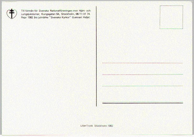 - Svenska Nationalföreningen mot Hjärt- och lungsjukdomar. Svenska Kyrkor. [1982]. - [Baksidan].