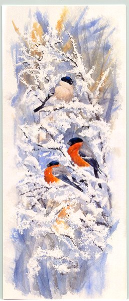 - Rune I Johansson. "Fåglar i vinterskog." Palmeblads Förlag. 195 x 140 mm. Nr 257. [1995]